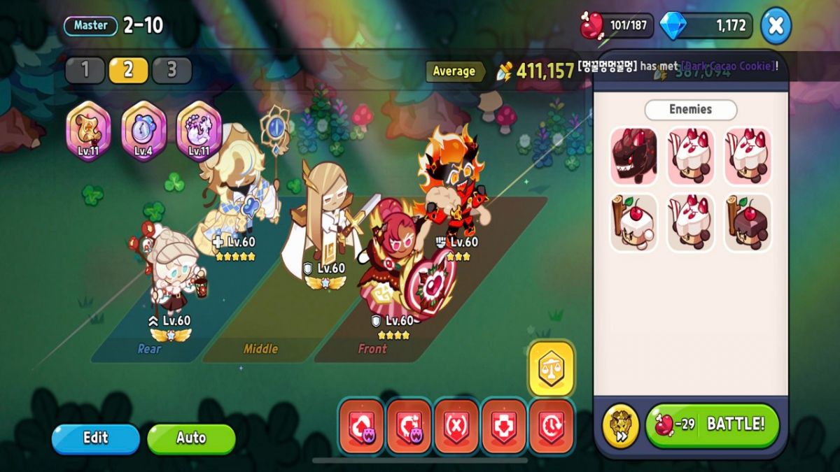 The combat mechanics are simple yet engaging. You’ll select a team of cookies, each with unique abilities, and send them into battle. The outcome of the fight depends on how well you’ve built and positioned your team. Whether your cookies are dealing damage, healing each other, or providing buffs, every action must be carefully timed for maximum effect. It’s a game of both planning and execution, where your strategic choices matter.
